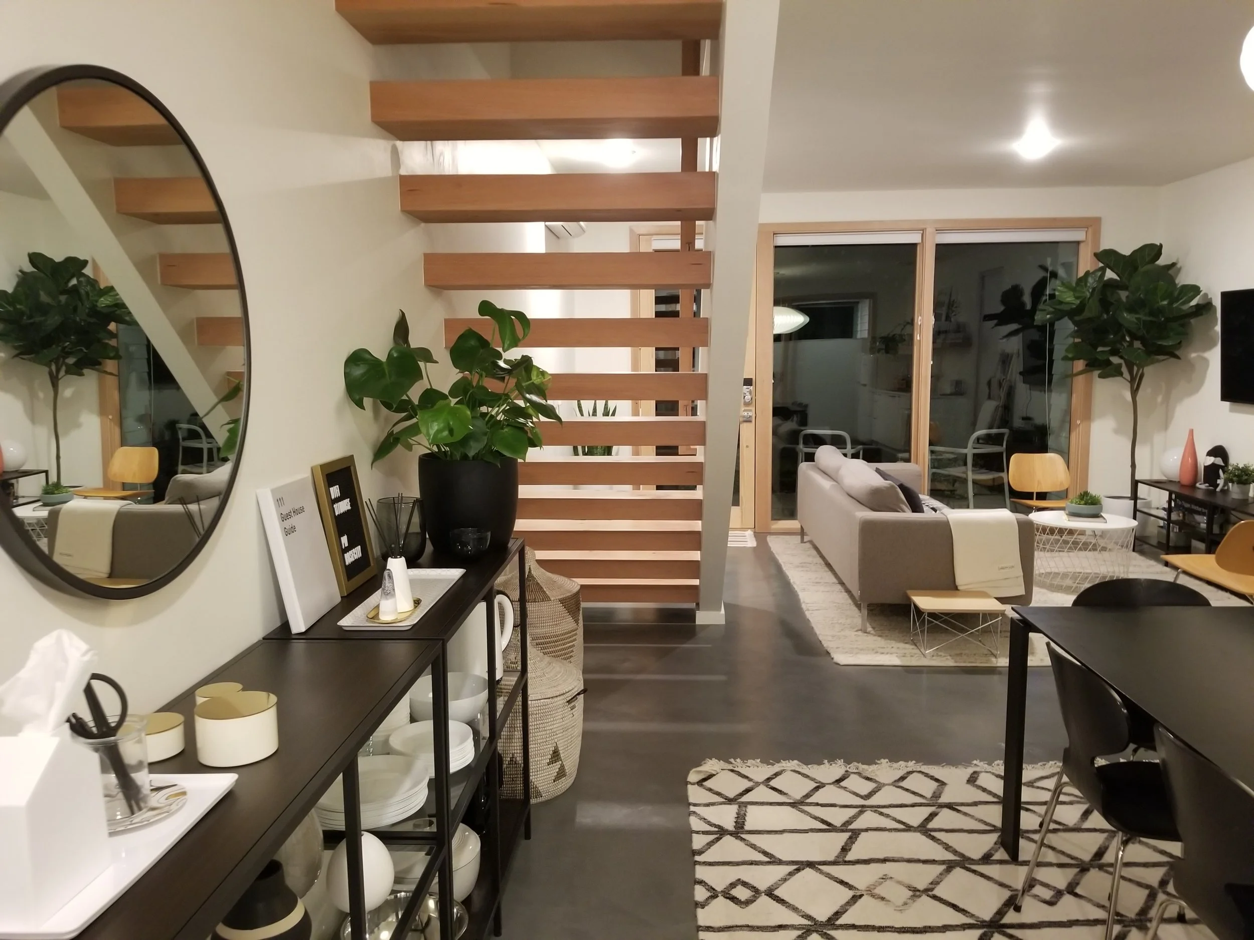 New construction accessory dwelling with #5 smooth wall finishes, custom burnished Milestone bathroom, and high end trowelled floor overlay on main level.